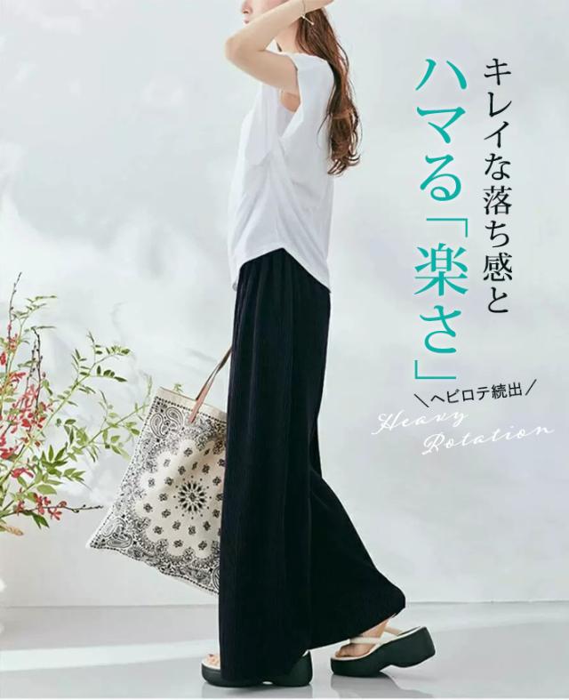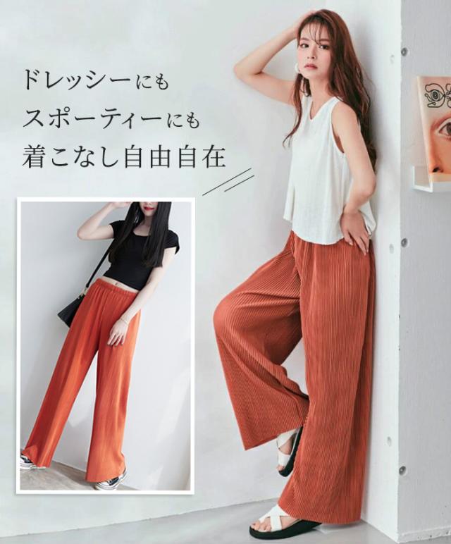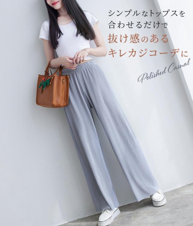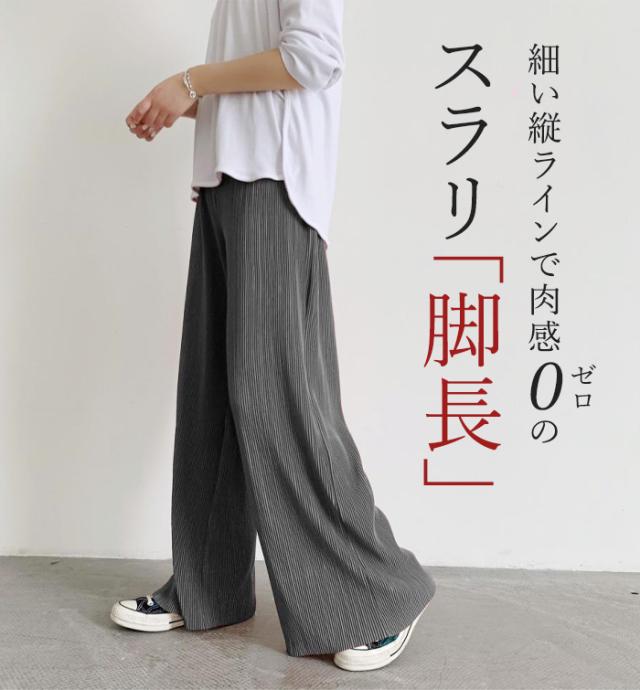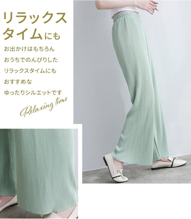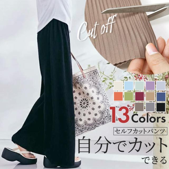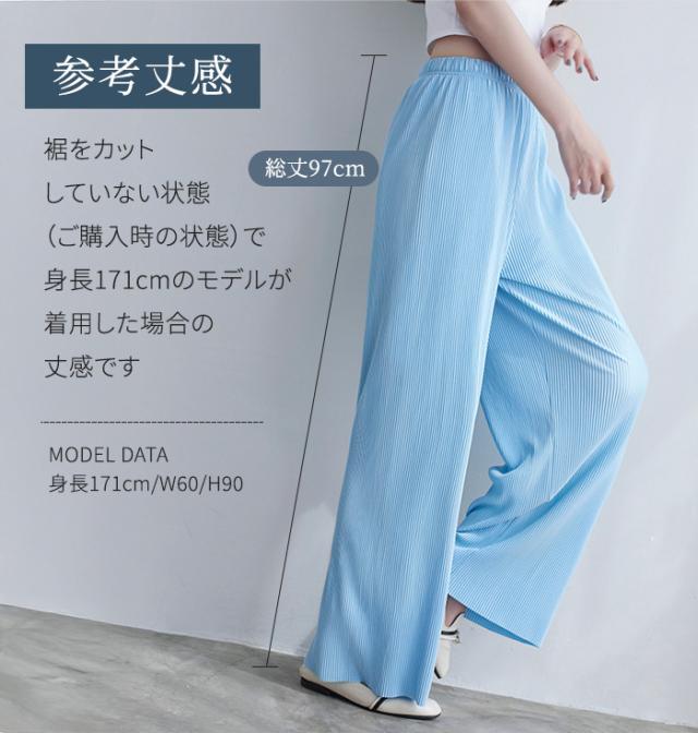ワイドパンツ レディース セルフカット 切れる \新作/ プリーツ 光沢感 縦ライン 高見え 高身長 低身長 リブパンツ ワイドパンツ イージーパンツ 裾カットOK ウエストゴム リラックスパンツ ボトムス 大きいサイズ 体型カバー 春 夏 秋
