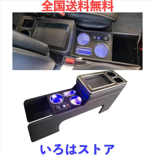 【最新型コンソールボックス】:1.ブルーのLED灯が付き、夜車内が暗い時、小物を探すことに便利になります。車内の灯を開けることが要らなく、運転の安全を確保する。2.前席+後席に 5口USBポートを増設、後部座席の乗客にも便利になります。3.収納も大容量!ティッシュボックスやマスク、スマホなど様々な物を収納できます。