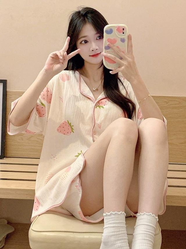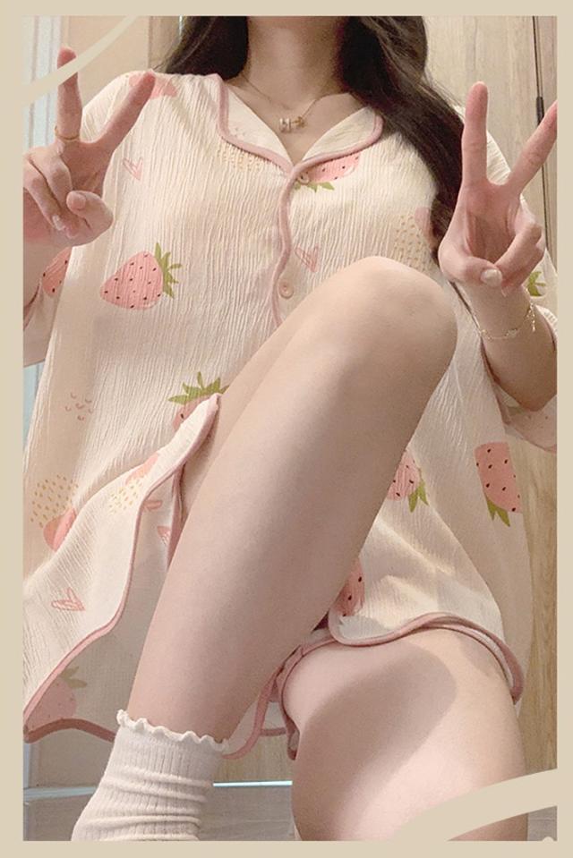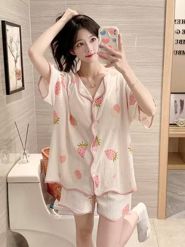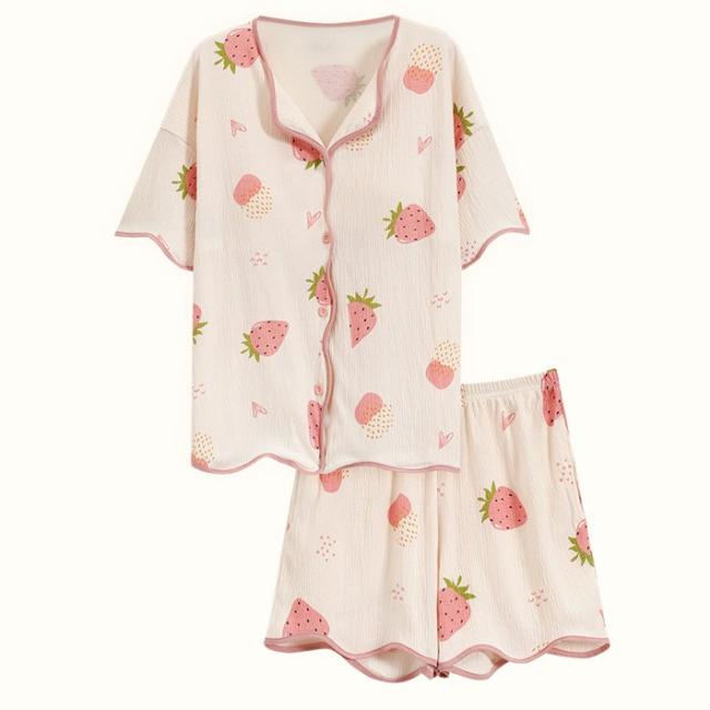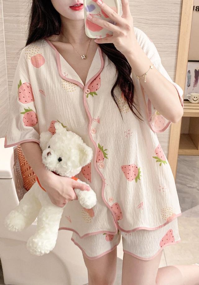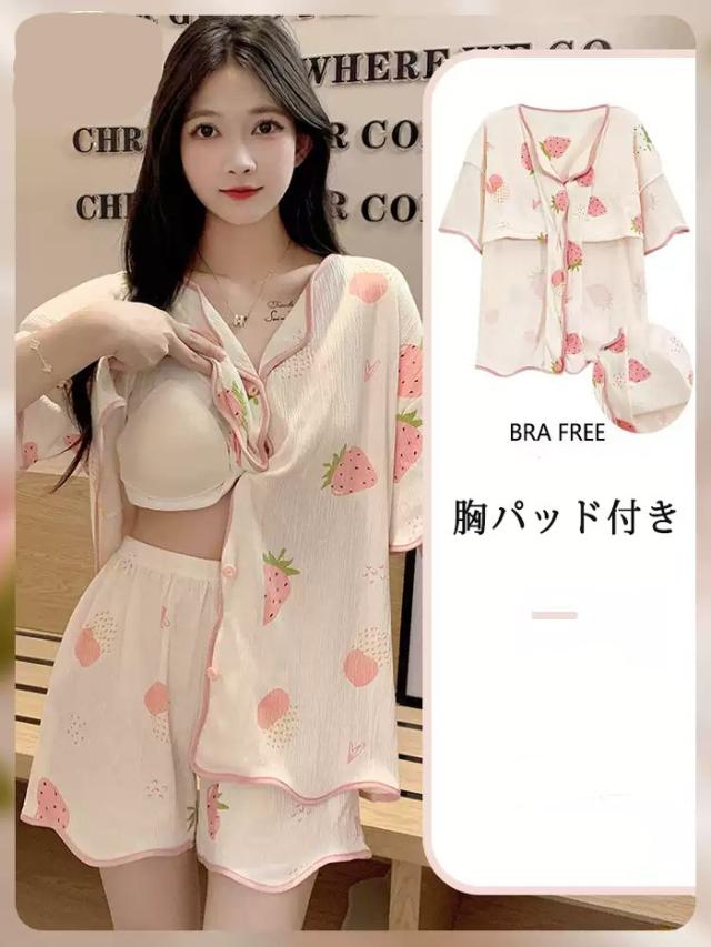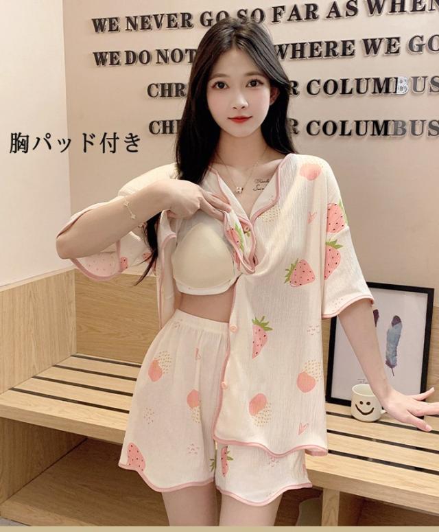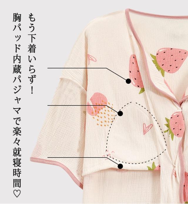 パジャマ レディース 夏用 いちご柄 半袖 上下セット 胸パッド付き ピンク 部屋着 寝間着 ルームウェア 大きいサイズ ぽっちゃり 夏用 秋用 可愛い かわいい 薄手 サマーパジャマ ゆったり 女性 リラックス おしゃれ 誕生日 ギフト 結婚祝い プレゼント dh123zbzbm5