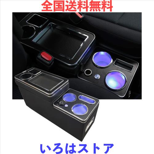 【最新型コンソールボックス】:1.ブルーのLED灯が付き、夜車内が暗い時、小物を探すことに便利になります。車内の灯を開けることが要らなく、運転の安全を確保する。2.前席+後席に 5口USBポートを増設、後部座席の乗客にも便利になります。3.収納も大容量!ティッシュボックスやマスク、スマホなど様々な物を収納できます。