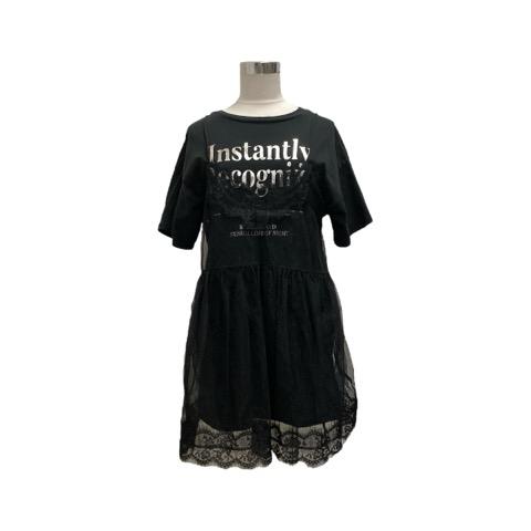 【中古】ジュエティ jouetie Tシャツ 半袖 クルーネック ロゴプリント コットン 082432700901-01 M 黒 ブラック シルバー レディース