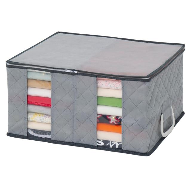 ◆商品名:アストロ 収納ケース グレー 衣類用 仕切り 持ち手付き 衣類収納袋 通気性の良い不織布がホコリなどの汚れをガード 仕切り付きで衣類が崩