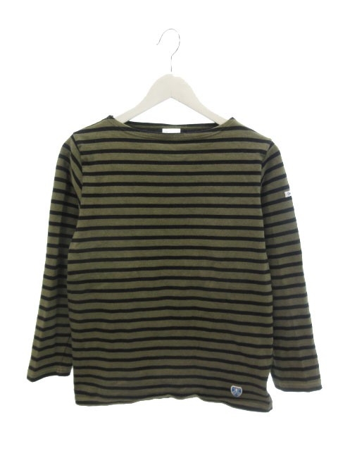 【中古】オーチバル ORCIVAL オーシバル ボーダー ロンT カットソー 2 グリーン系 黒 ブラック フランス製 長袖