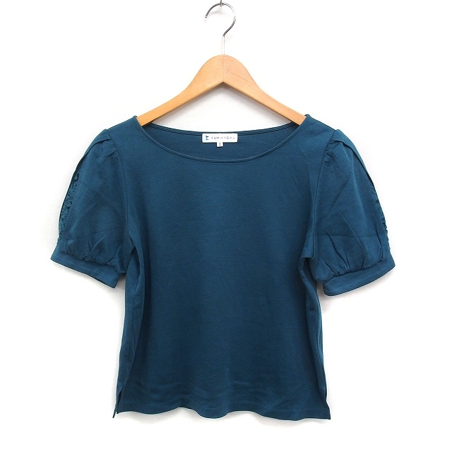 【中古】クミキョク 組曲 KUMIKYOKU レース パフスリーブ カットソー Tシャツ ボートネック 半袖 無地 コットン 綿 2