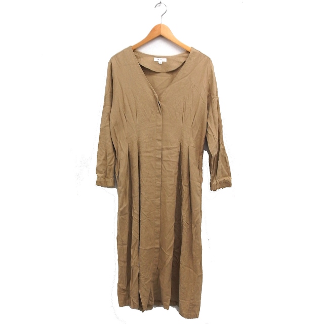 【中古】ニコアンド Niko and.. リネン シャツ ワンピース 長袖 ロング フレア 無地 3 ベージュ /FT14 レディース
