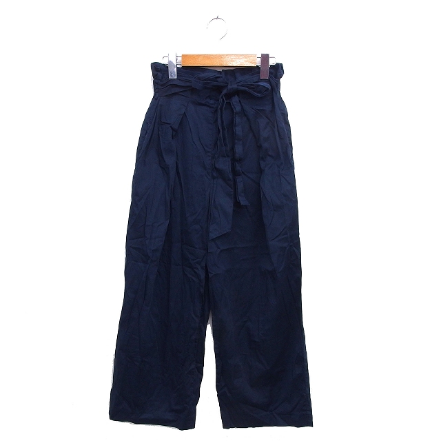 【中古】イエナ IENA ワイド パンツ リボン タック コットン 綿 無地 38 紺 ネイビー /NT9 レディース