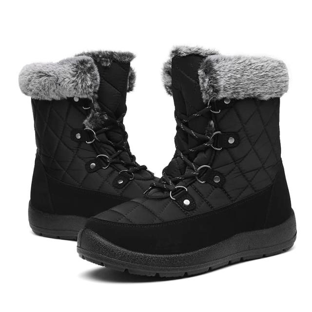 【オシャレなデザイン】編み上げデザインの特徴は、寒い冬の日でも普通の雪靴より暖かくて快適に履けます。冬用ブーツを包む可愛くて贅沢なフェイクファーの飾りがあれば、毎日を快適に過ごすだけでなく、オシャレ感も満載!