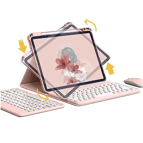 ◆商品名:マウス付き iPad 10 2022/iPad 11 2025キーボードケース おしゃれ グラデーションカラー 360度回転式 iPad第10世代 iPad第11世代 ケース