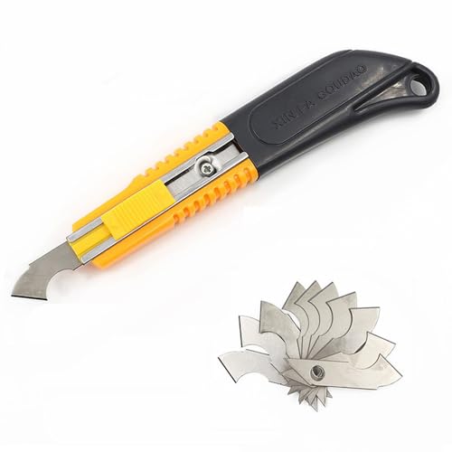・替刃付きカッター替え刃が10枚付属しており、刃のが便利になります。刃はフックナイフの先端に収納できるので、保管や取り外しが簡単です。