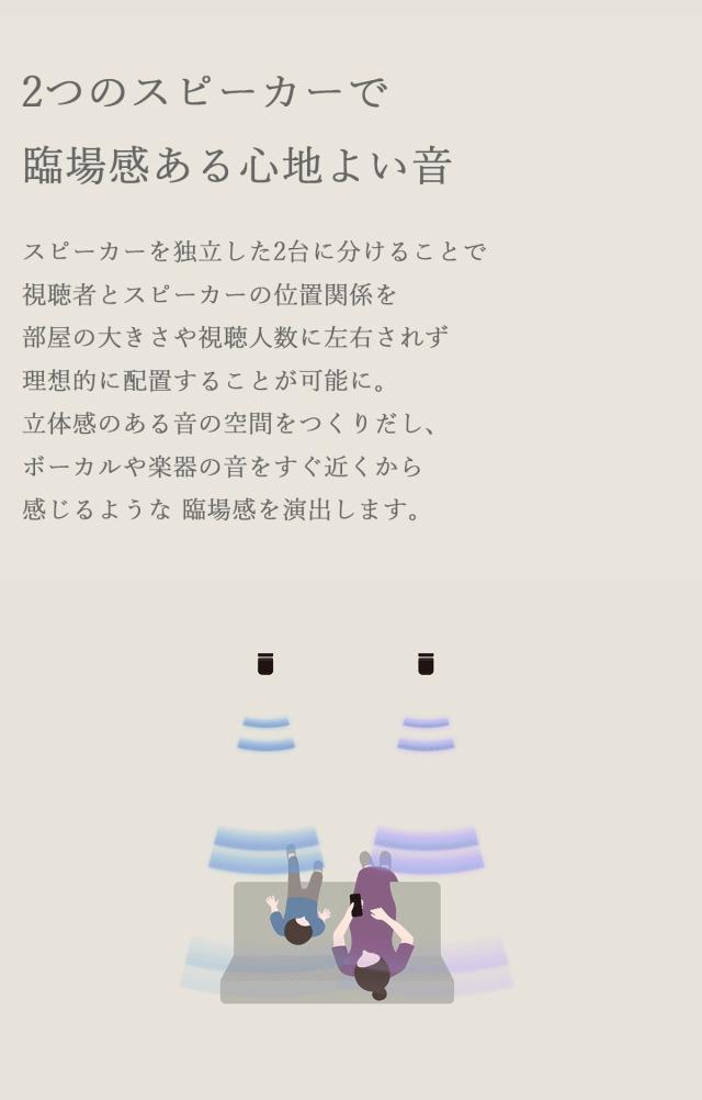 左右それぞれに独立した2つのスピーカーが、臨場感と立体感のある自然なサウンドを実現し、どこでも心地よい音に包まれるくつろぎのひとときを演出します。