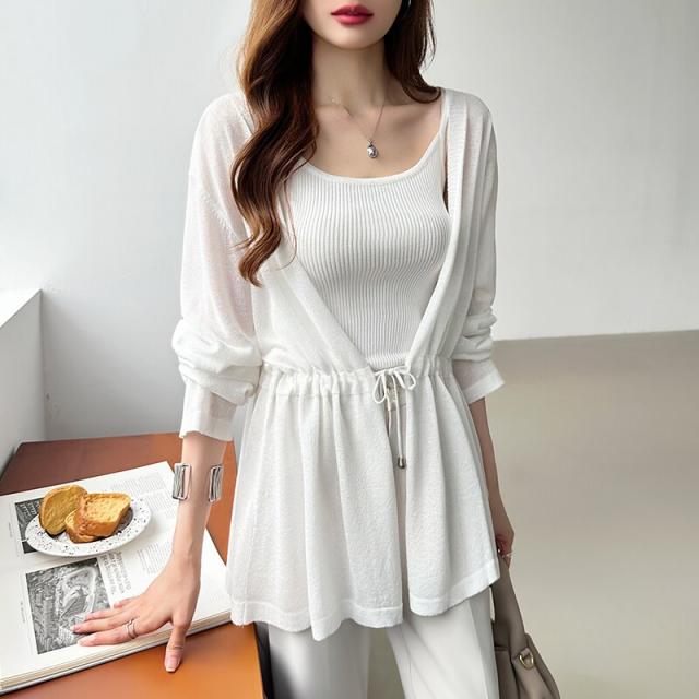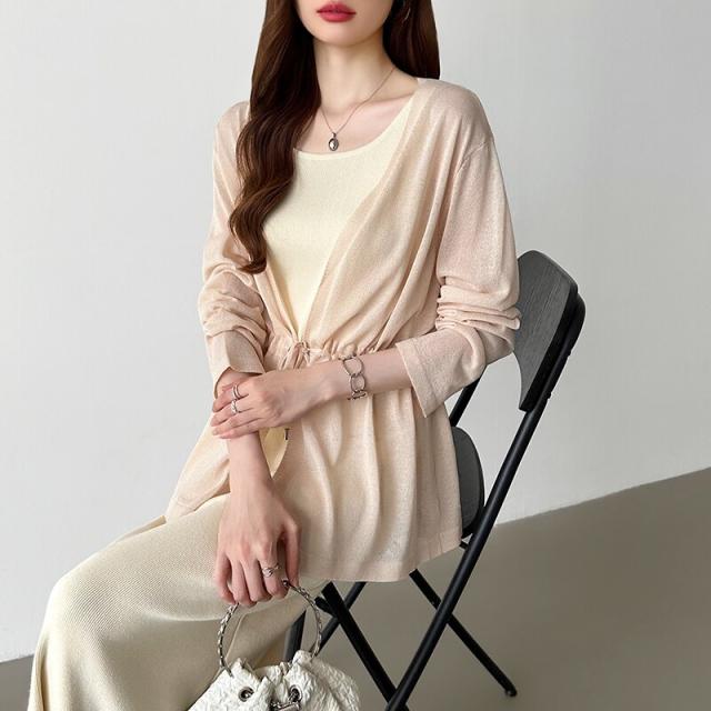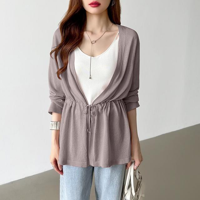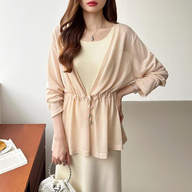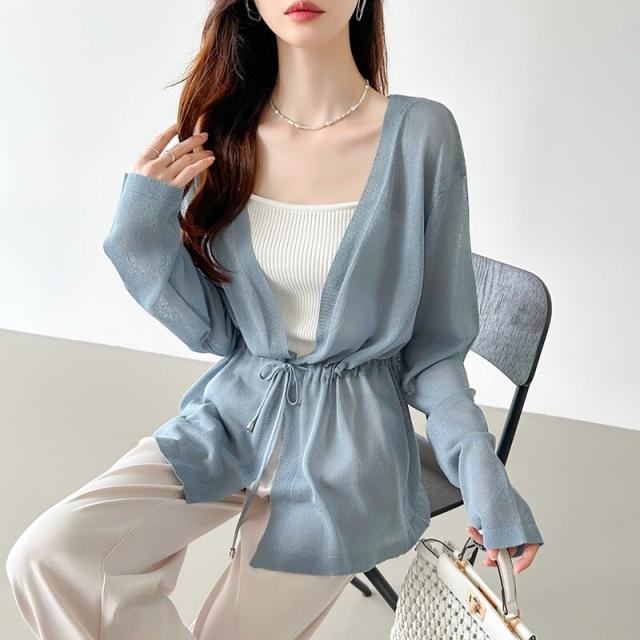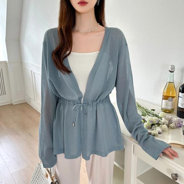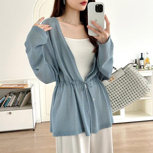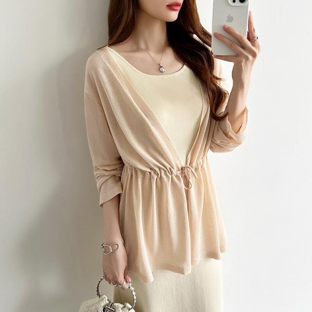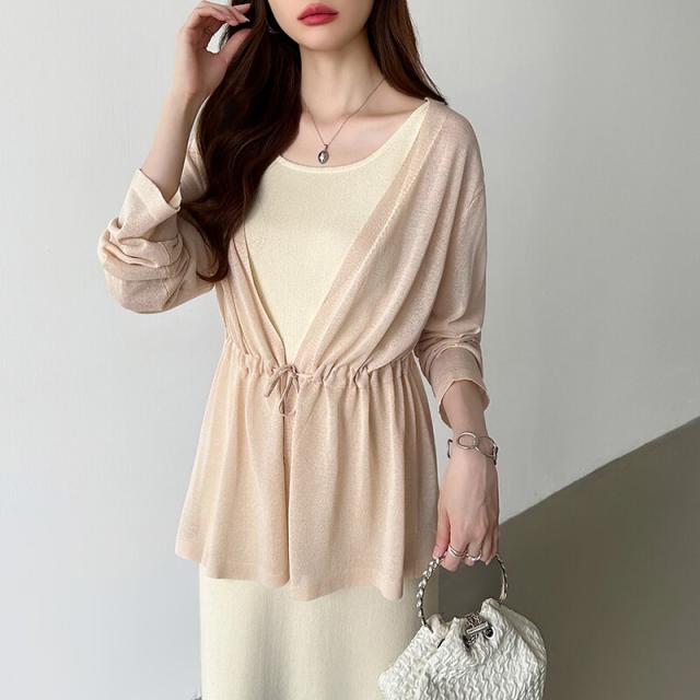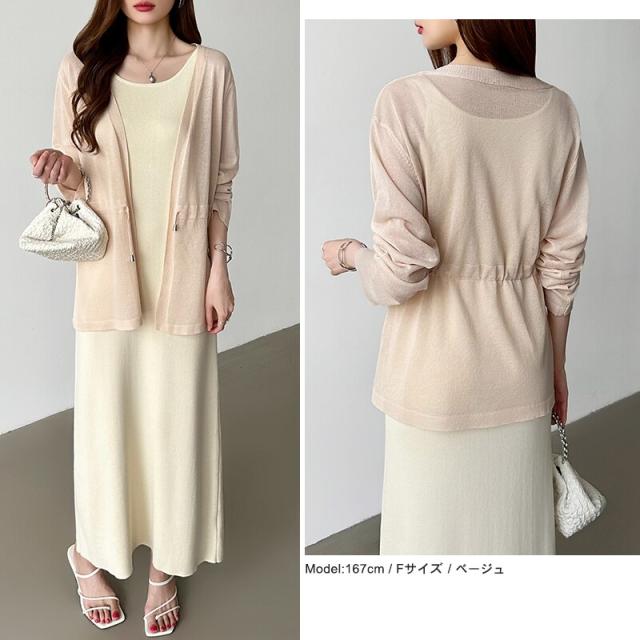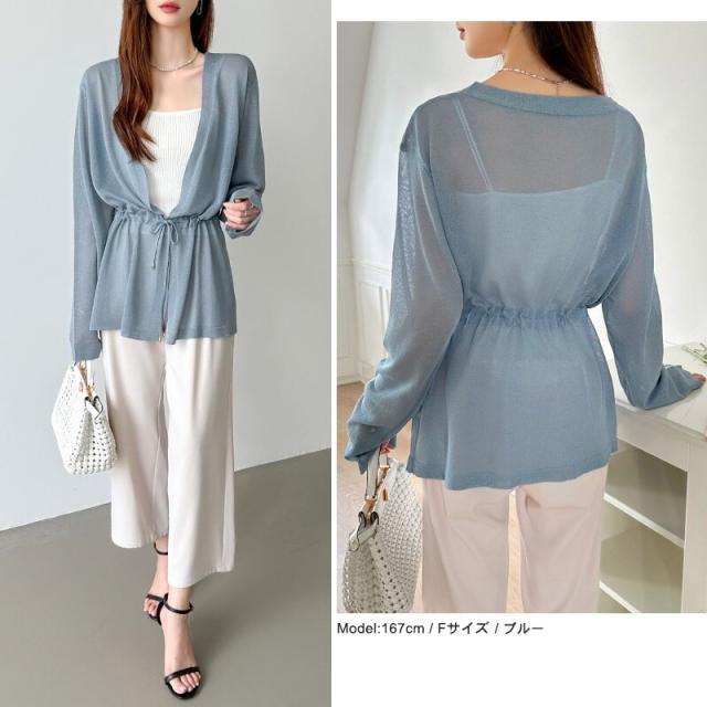 シアーカーディガン サマーカーディガン カーディガン 体型カバー ペプラム ウエストマーク 薄手