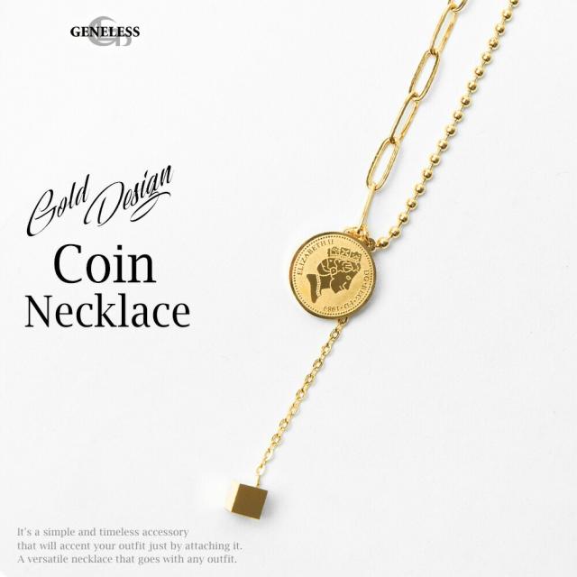 ジェネレス(geneless)/ネックレス メンズ ゴールド おしゃれ キューブ コイン コインモチーフ チェーンネックレス