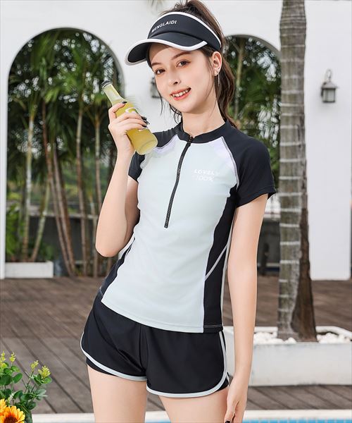 バイカラーとステッチデザインがオシャレなラッシュガード風水着。