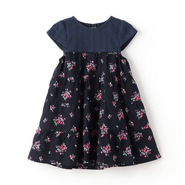いちご柄のティアードスカートをドッキングしたワンピースです。