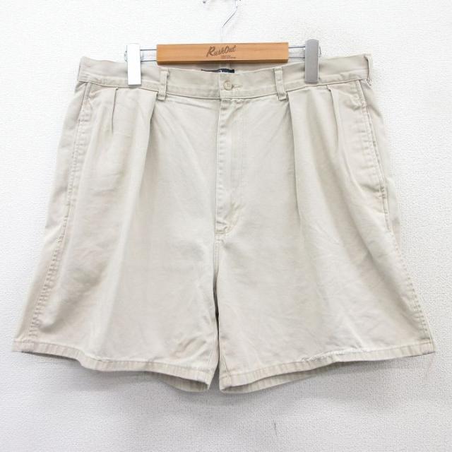【商品名】 W35★古着 トミーヒルフィガー ブランド ショート チノ パンツ ショーツ チノパン メンズ 90年代 90s ワンポイントロゴ コットン ベージュ