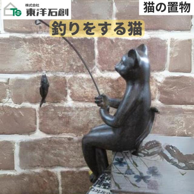 猫の置物 ねこの置物 アンティーク雑貨 釣りをする猫 送料無料