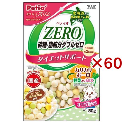 ペティオ おいしくスリム 砂糖・脂肪分ダブルゼロ カリカリボーロ 野菜入りミックス(80g×60セット)[犬のおやつ・サプリメント]