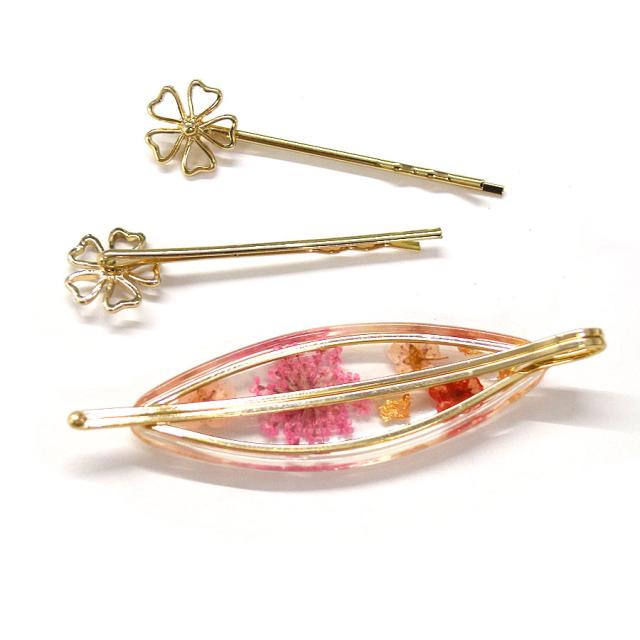 押し花モチーフとシンプルピンの3点セット!