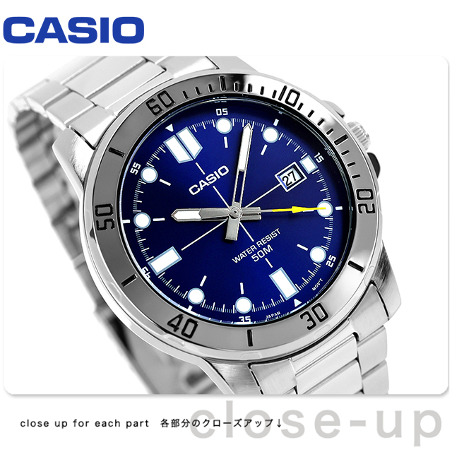 7年保証キャンペーン カシオ チープカシオ CASIO スタンダード クォーツ 電池式 海外モデル クォーツ 電池式 メンズ 腕時計 MTP-VD01D-2EVDF STANDARD アナログ ブルー ◆スポーティでスタイリッシュな、大胆なメタルアナログ時計。厚みのあるベゼルが特徴。50m防水機能と3時位置の日付表示窓が、アクティブな毎日を快適に彩ります。誕生日や記念日のプレゼントにもおすすめです。 日本未発売モデル