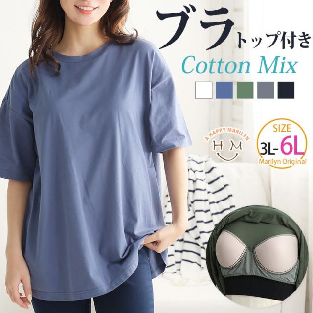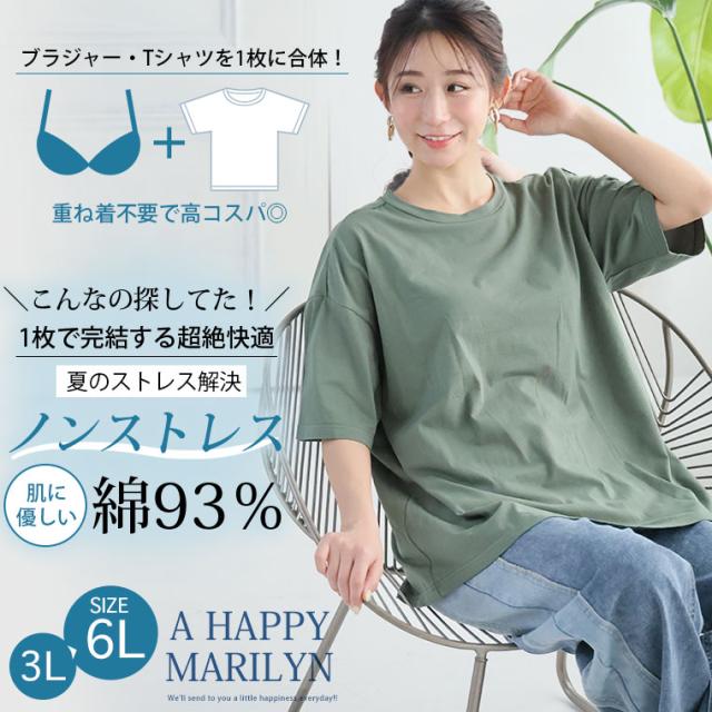 新作 大きいサイズ レディース トップス | 「楽すぎて革命的」。 超絶快適! 1枚でブラいらず「ブラトップ Tシャツ」 [438252] 3L 4L 5L 6L