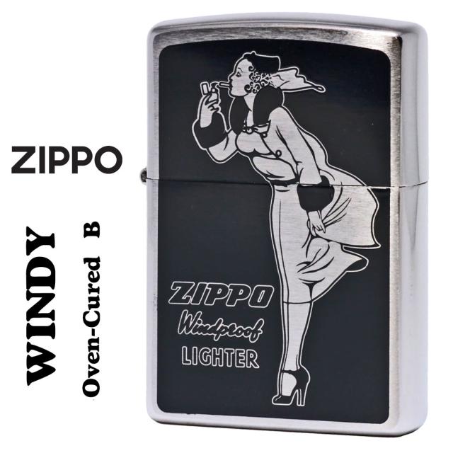 zippo ジッポーライター 人気のWINDYデザイン ウィンディ プリント Oven-Cured B ブラック オイルライター P-WINDY-B 黒色 かわいい おしゃれ 焼き付け塗装 ZIPPOロゴ入り キュート レディース 女性 ギフト プレゼント 送料無料 メール便対応