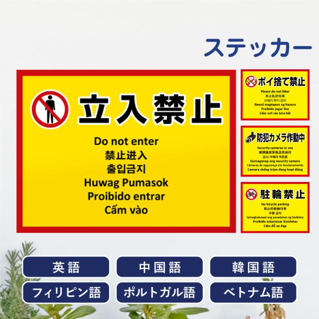 多言語ステッカー H260×W350mm英語 中国語 韓国語 フィリピン語 ポルトガル語 ベトナム語 立入禁止 ポイ捨て禁止 multi-ye-st