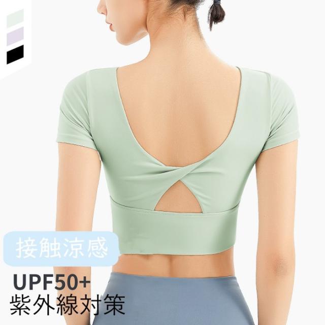 ヨガウェア トップス 半袖 Tシャツ クロル カップ付き 涼感 UVカップ 速乾 通気性 レディース 伸縮性 ジムウェア スポーツウェア フィットネスウェア おしゃれ ランニングウェア シ