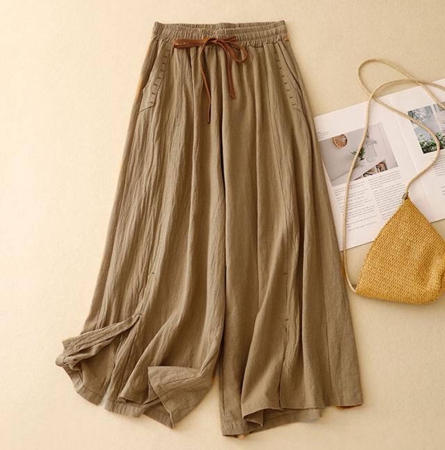 ワイドパンツ レディース 夏 ガウチョ レディースファッション 割引 コーヒー グレー 麻色 M L XL 2XL