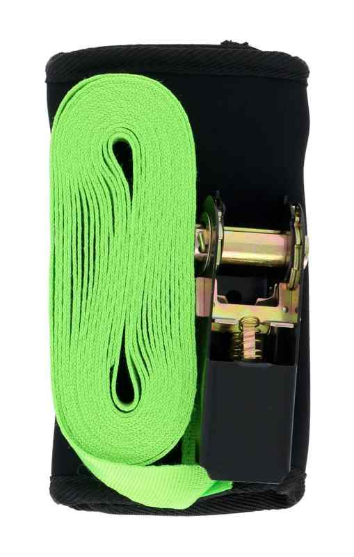 高儀(Takagi) やわらか パッド付 ラチェット式 荷締めベルト 5m 蛍光グリーン 幅25mm 破断荷重約700kgf 安全荷重約100kgf 荷物固定 ラチェットベルト ラッシングベルト 固定バンド