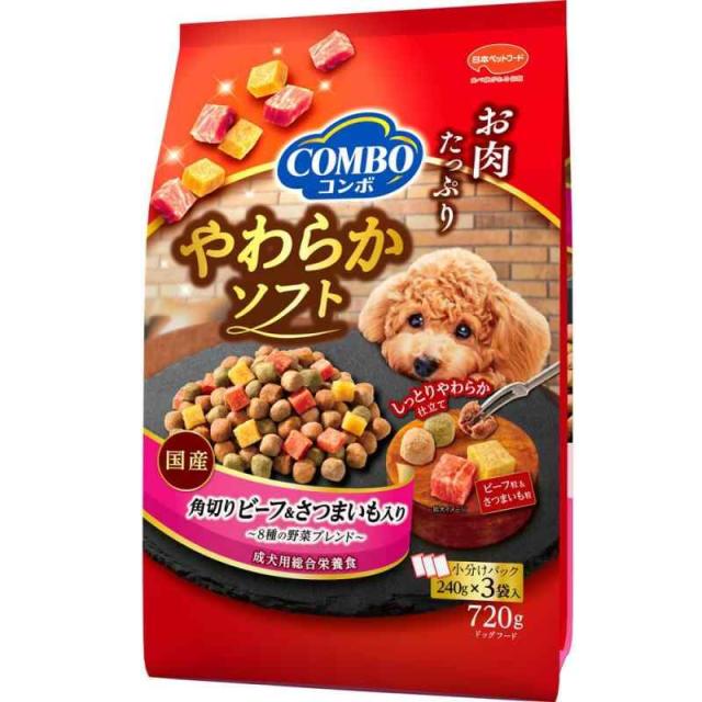 コンボドッグやわらかソフト【半生タイプ】【たっぷりお肉粒】【国産】【小分け包装】角切りビーフ・さつまいも 野菜ブレンド720g