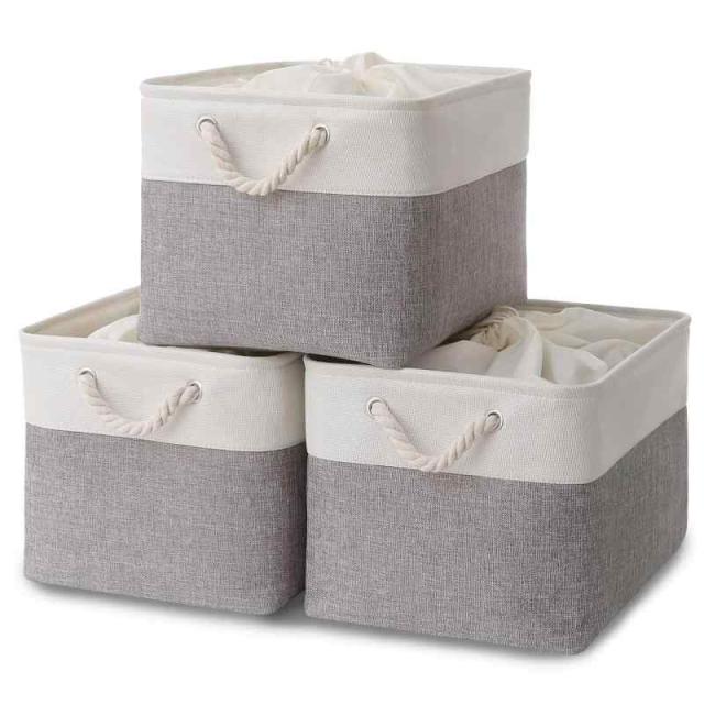 MiyabiLife 収納ボックス 収納バスケット 収納かご 3個セット (ホワイト・グレー, 28×28×28cm・3点セット)