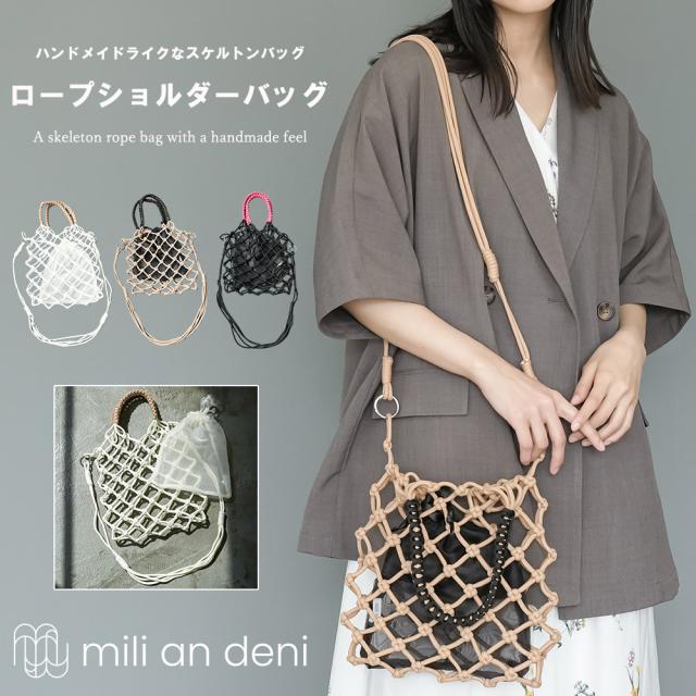 春新作 あみバッグ 鞄 トートバッグ ファスナー アウトドア バッグ レディース バッグ 春夏ミリアンデニ メール便(郵2)対応 b60004