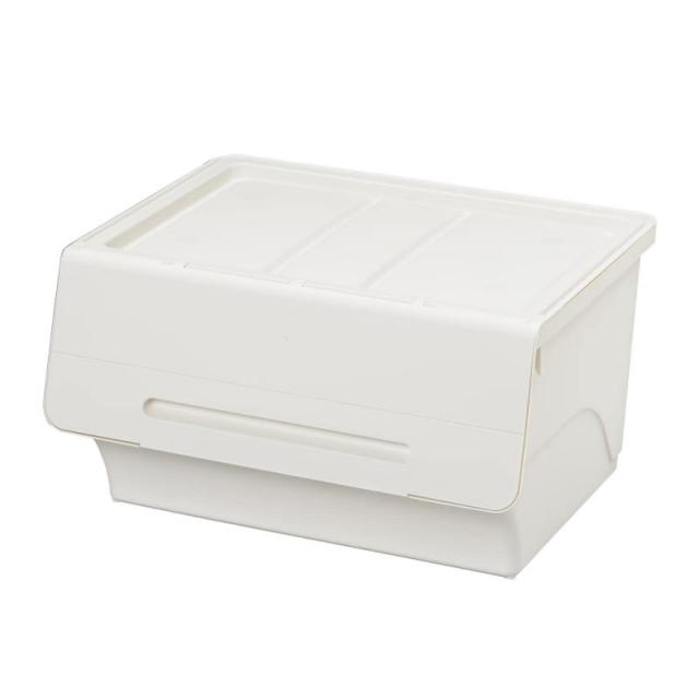 サンカ 収納ボックス 前開き フタ式 フロック (ワイド, ホワイト)