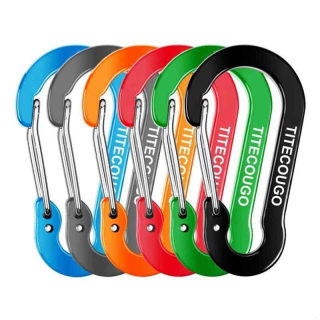 [TITECOUGO] ひょうたん形 多機能 カラビナ アルミ合金 超軽量 丈夫な キーチェーン 生活雑貨 アウトドア キャンプ 耐久性 色も型番も多い (6色A, 6 個)