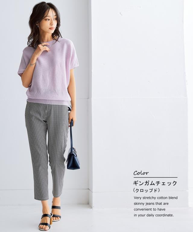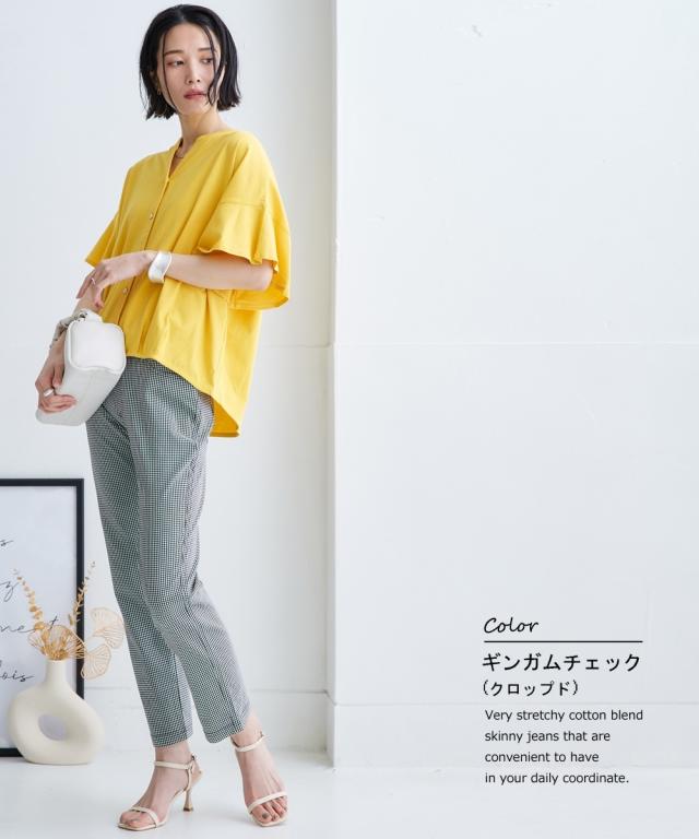 ベーシックなスキニーデザインでもハリ感のある生地なら脚のラインを拾いすぎずきれいめスタイルにもピッタリ。