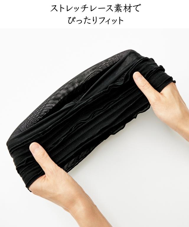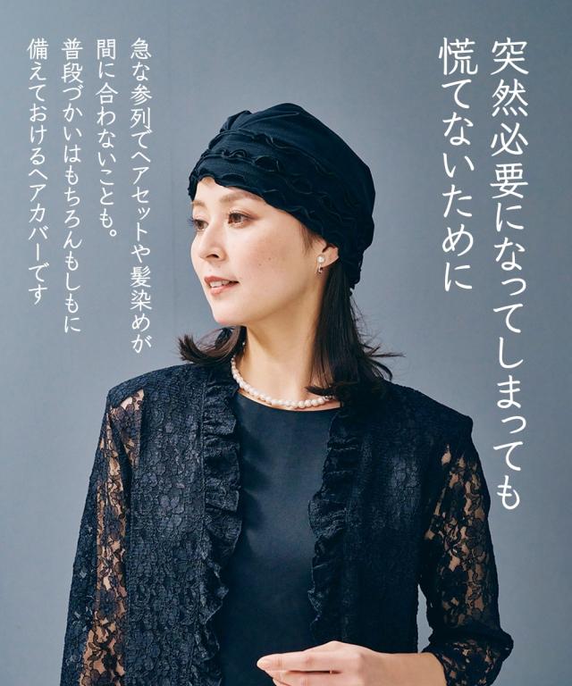さっとかぶって安心、フォーマルヘアカバー。 突然必要になってしまっても慌てないために。 急な参列でヘアセットや髪染めが間に合わないことも。 普段使いはもちろんもしもに備えておけるヘアカバーです。 通気性がよく長時間でもムレにくい。 折り畳んで持ち運びしやすい。 ■素材 ストレッチ、レース素材でピッタリフィット。 母娘でも共有できて幅広い年代の方におすすめできるデザインです。 日本製
