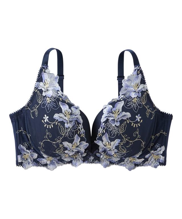 トリンプとニッセンの共同企画から、新しいバストの形をご提案!人気シリーズ「イニシャルコレクション」の新企画商品です。脇に流れやすいバストも、V字ラインで引き寄せ包み込むこのブラジャーにお任せください。カップのパターンにこだわり、脇のお肉をしっかり寄せることで、美しいバストラインをメイクします。前中心は低めの設計で、L字ワイヤーを採用。「私の胸ってこんなにきれいだった」と、思わず見惚れるほどの美しいバストが実現します。大胆な花柄はオリジナルレース。マルチカラーの刺しゅう糸が、バストを華やかに彩ります。アンダーバストまでしっかりと柄が入っているので、豪華な仕上がりです。※マルチ糸を使用しているため、柄の出方が写真と多少異なる場合がございます。コーディネートできるショーツは別売りです。