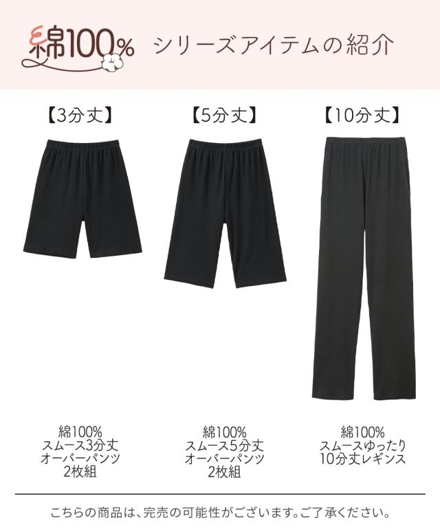 オーバーパンツ スパッツ レディース 綿100% スムース3分丈オーバー パンツ 2枚組 春 夏 秋 冬 インナー 女性 M〜L/L〜LL ニッセン nissen