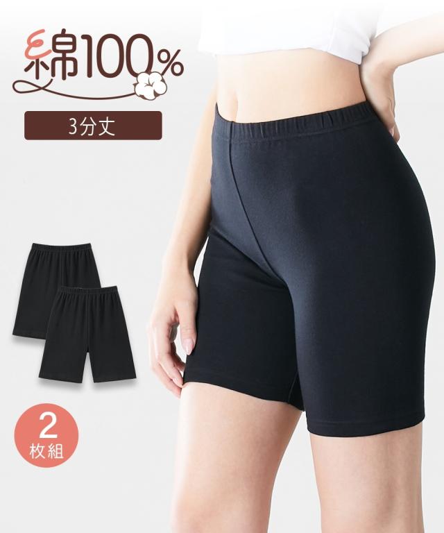 オーバーパンツ スパッツ 大きいサイズ レディース 綿100% スムース3分丈オーバー パンツ 2枚組 春 夏 秋 冬 インナー 女性 3L〜4L ニッセン nissen