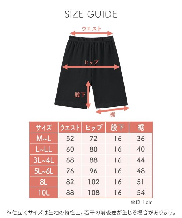 綿100%スムース3分丈オーバーパンツ2枚組 ムレにくく、やさしい肌ざわり 【ニッセンの綿100%シリーズ】 素肌に着るインナーは、心地いい素材にこだわりたい。 肌にやさしい天然綿100%でオールシーズン使える丈夫な素材。 ◇◇◇おすすめPOINT◇◇◇ 【やさしい肌ざわり】 嫌な刺激が少なく、包みこむ肌ざわり 素肌に直接触れるものだから、肌ざわりにこだわりました。 【通気性】 通気性がよく、オールシーズン使える 綿は通気性に優れ、吸湿性もあるので、さらりとした快適な着心地 【吸水性】 吸水性に優れ、汗っかきさんにおすすめ 汗などの水分をしっかり吸収してくれる綿素材は 肌着・下着などのインナーに最適 【ストレッチ性】 スムース生地で伸縮性があり身体にフィット 若干厚みがあり柔らかい生地は普段使いにちょうどいい 【細部にもこだわった仕様】 股上深めなので、かがんでも背中が見えにくい! 98%以上の紫外線を防ぐので、履くだけで日焼け対策にも! ウエストゴムはねじれ防止縫製になっています。 【チクチクしないプリントネーム】 プリントネームなのでチクチク感が気にならず、快適な着心地 こんなお悩みありませんか 「汗をかくと内ももが赤くなる」 「歩くたびに