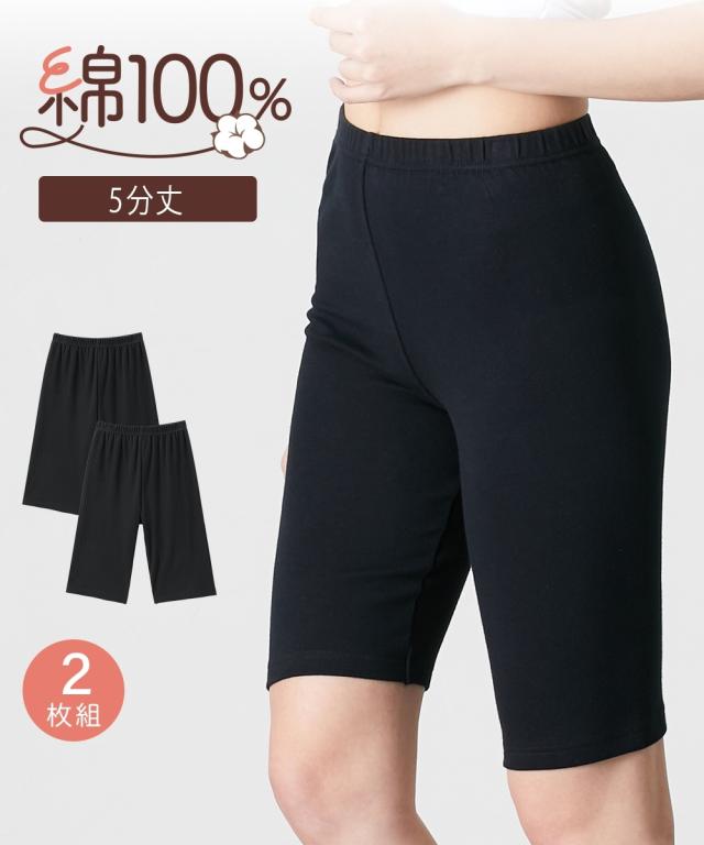 オーバーパンツ スパッツ レディース 綿100% スムース5分丈オーバー パンツ 2枚組 春 夏 秋 冬 インナー 女性 M〜L/L〜LL ニッセン nissen