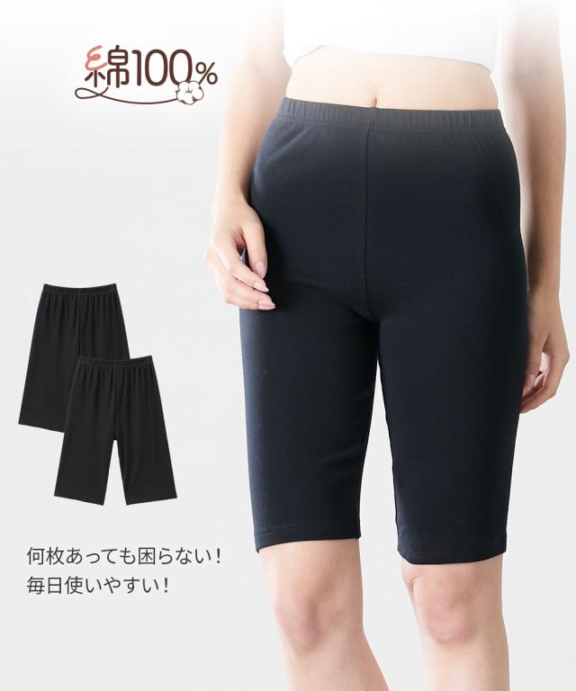 オーバーパンツ スパッツ 大きいサイズ レディース 綿100% スムース5分丈オーバー パンツ 2枚組 春 夏 秋 冬 インナー 女性 3L〜4L ニッセン nissen
