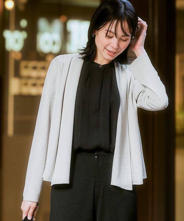 【レディーススーツ】セットアップ対応ショールカラージャケット(上下別売・うすカルジャージーシリーズ)