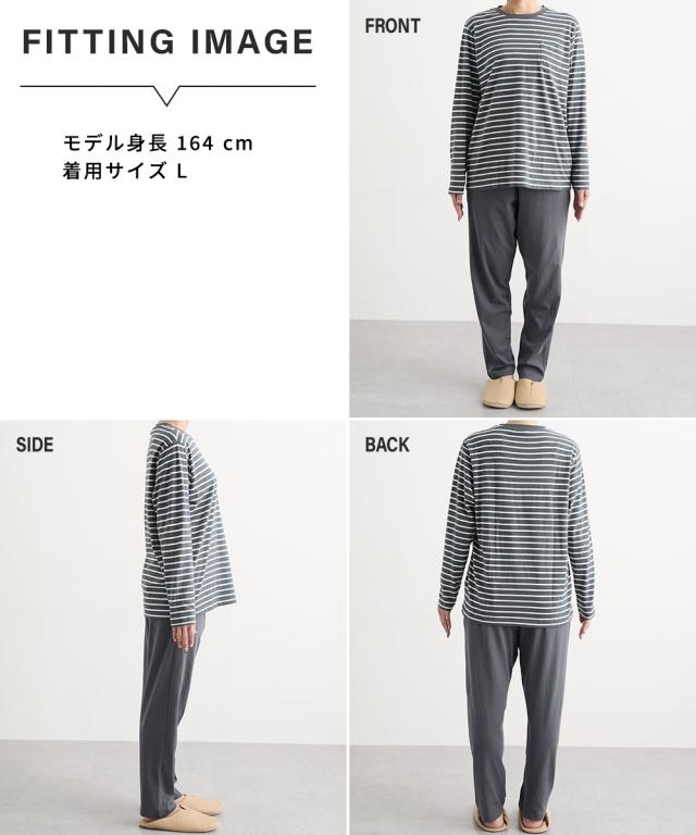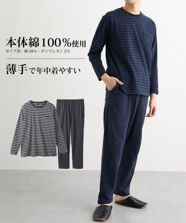 綿100%ボーダー柄薄手長袖ルームウェア上下セット BCIコットン使用 ニッセン nissen