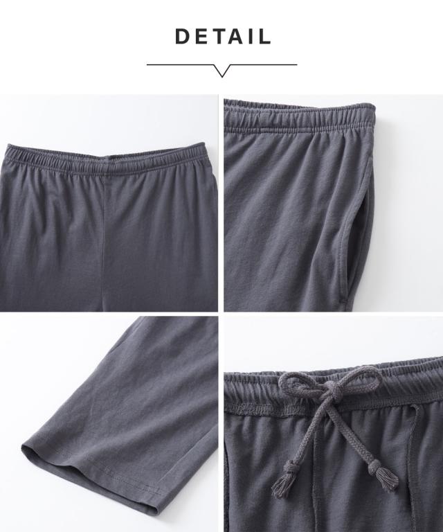 品質=綿100% リブ部分:綿98%・ ポリウレタン2% ※パンツ:前閉じ仕様 ゴム取替口なし 透け感:なし 伸縮性:あり 生地の厚み:薄め 光沢感:なし ポケット:トップス:胸1か所・パンツ:腰2カ所 季節:春・夏・秋 シルエット:少しゆったり 原産国:バングラデシュ製 備考:洗濯機OK ※商品サイズは、仕上がりサイズです。