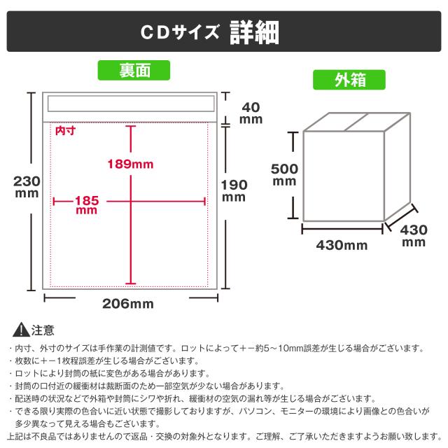 ・封筒の口付近の緩衝材は裁断面のため一部空気が少ない場合があります。