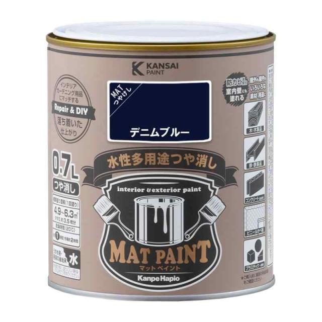 カンペハピオ ペンキ 塗料 水性 つやけし 多用途 マットペイント デニムブルー 0.7L 日本製 00347651981007