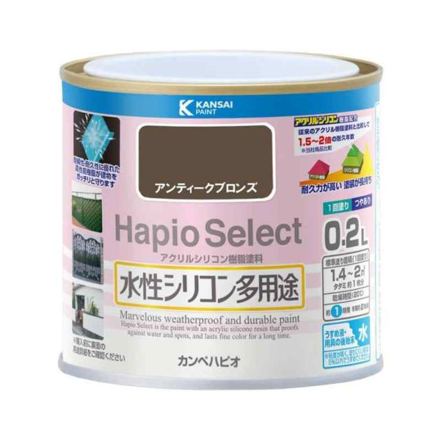 カンペハピオ ペンキ 塗料 水性 つやあり アンティークブロンズ 0.2L 水性シリコン多用途 日本製 ハピオセレクト 00017650101002
