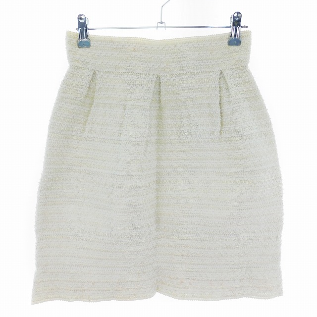 【中古】アイドール スカート フレア ひざ丈 バックファスナー ラメ 総柄 36 白 ホワイト ボトムス /T2 レディース