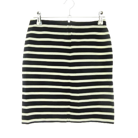 【中古】B&Y ユナイテッドアローズ タイトスカート ミニ バックファスナー コットン ボーダー S 黒 白 レディース